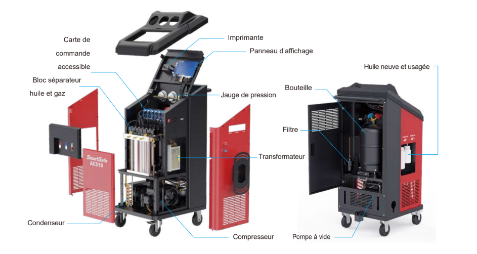 Fonctionnalités de la station de climatisation R134a – AC 519